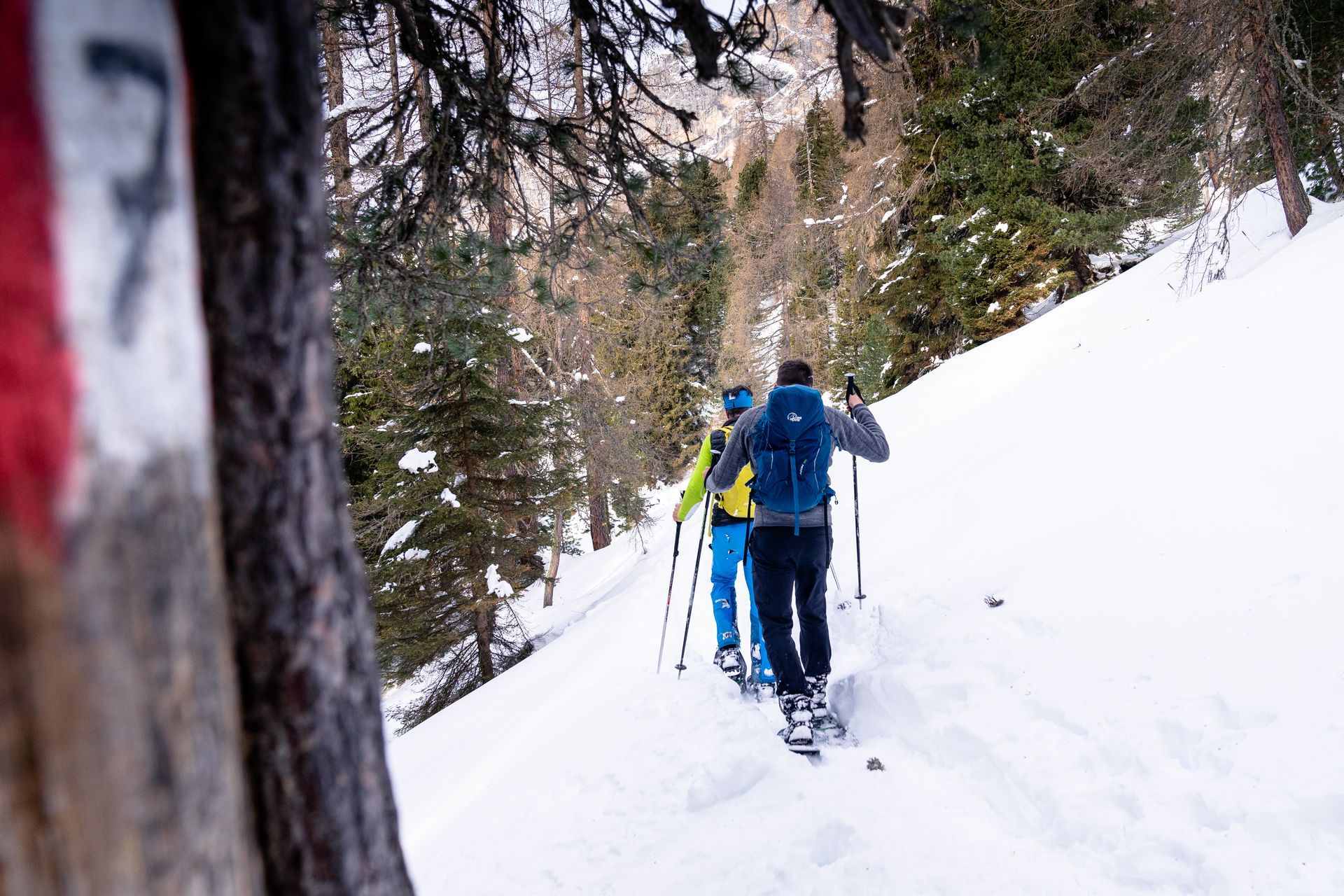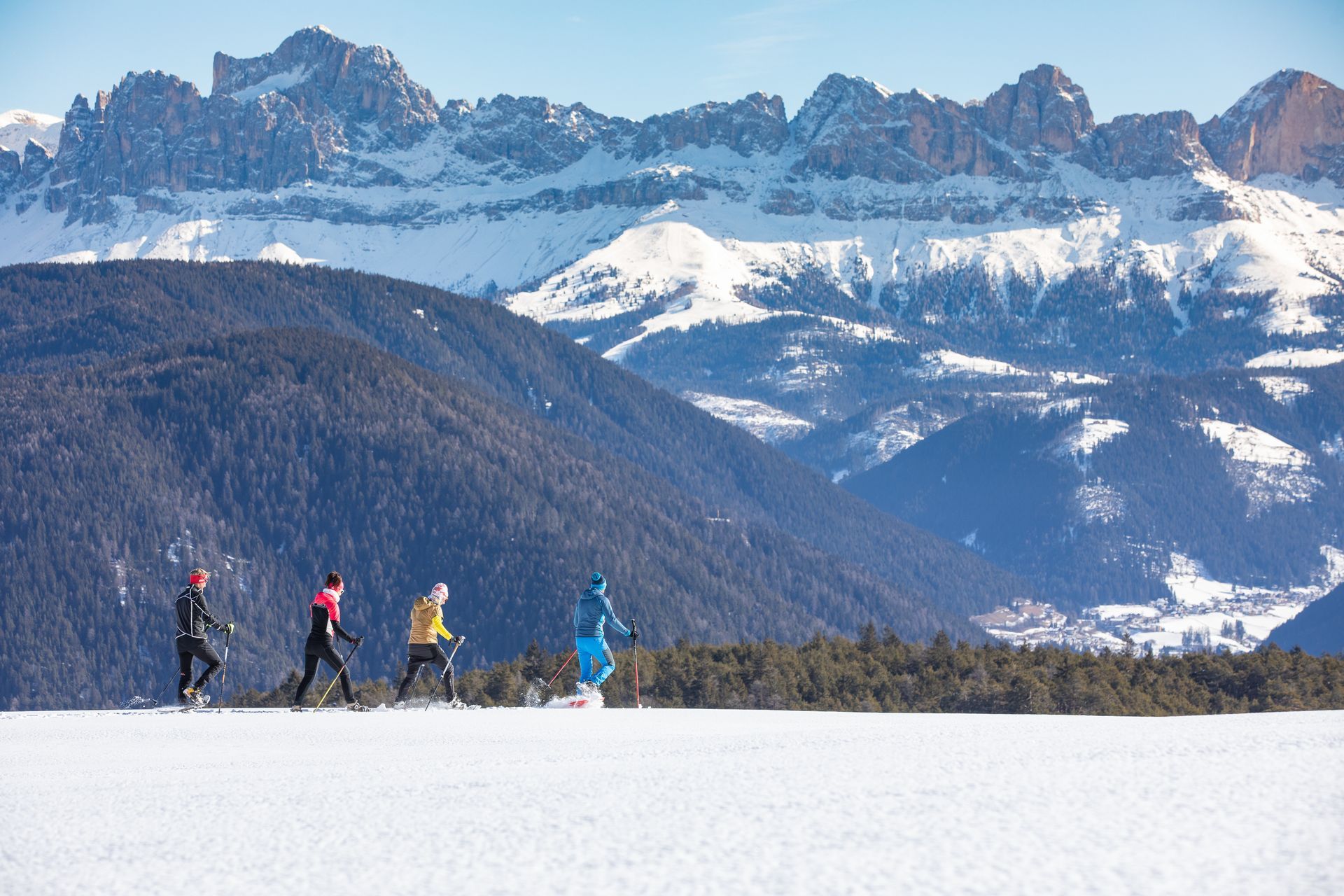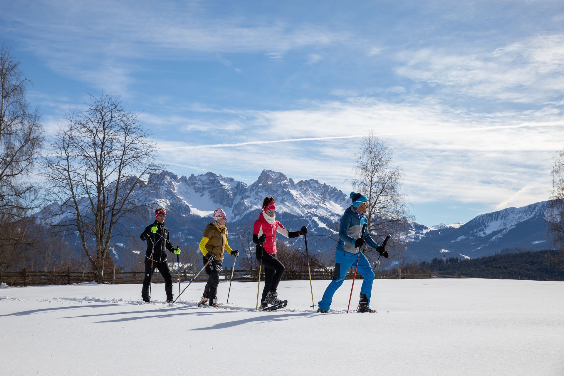 Schneeschuhwandern in den Dolomiten, in der Winterregion Eggental