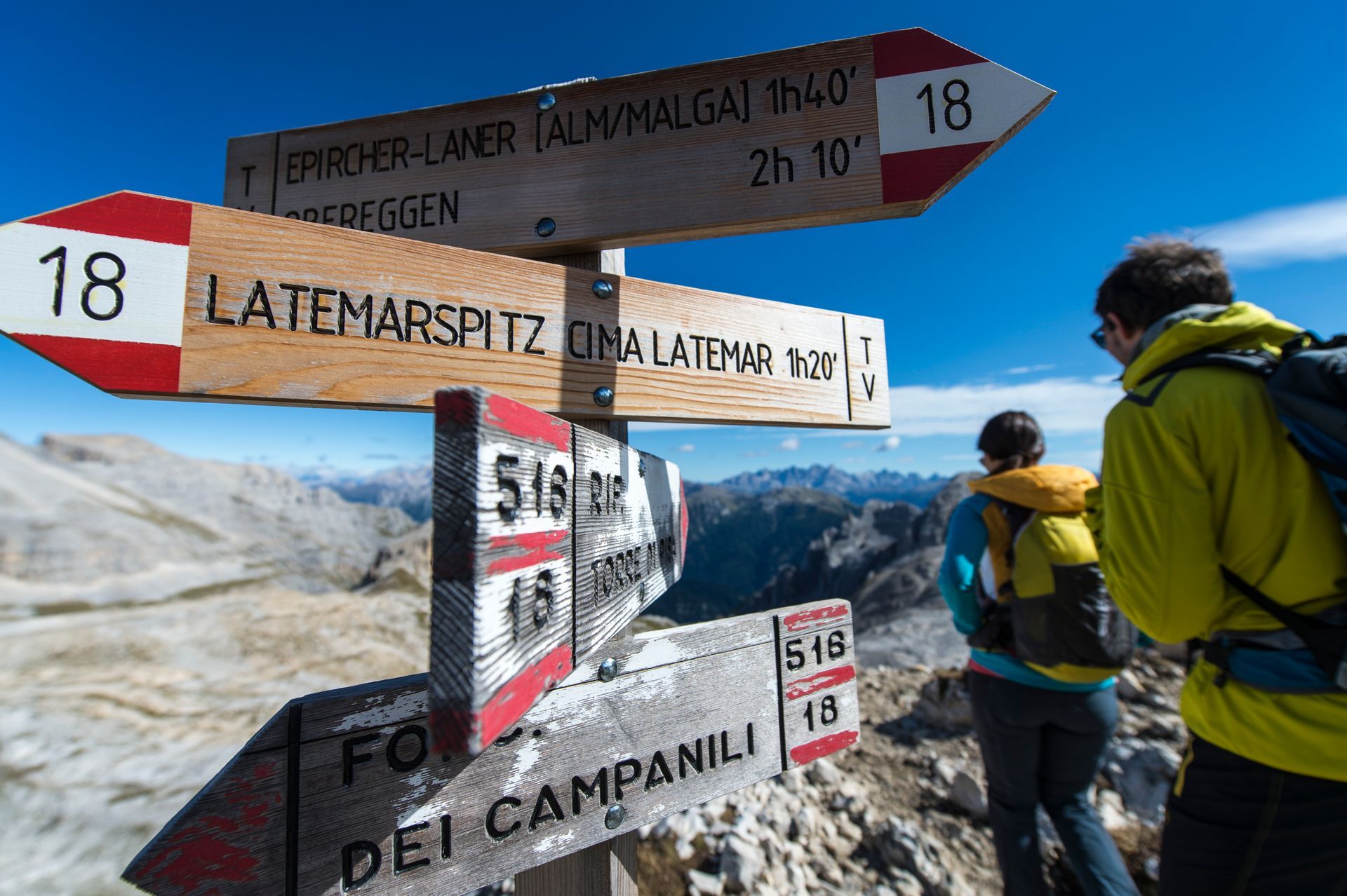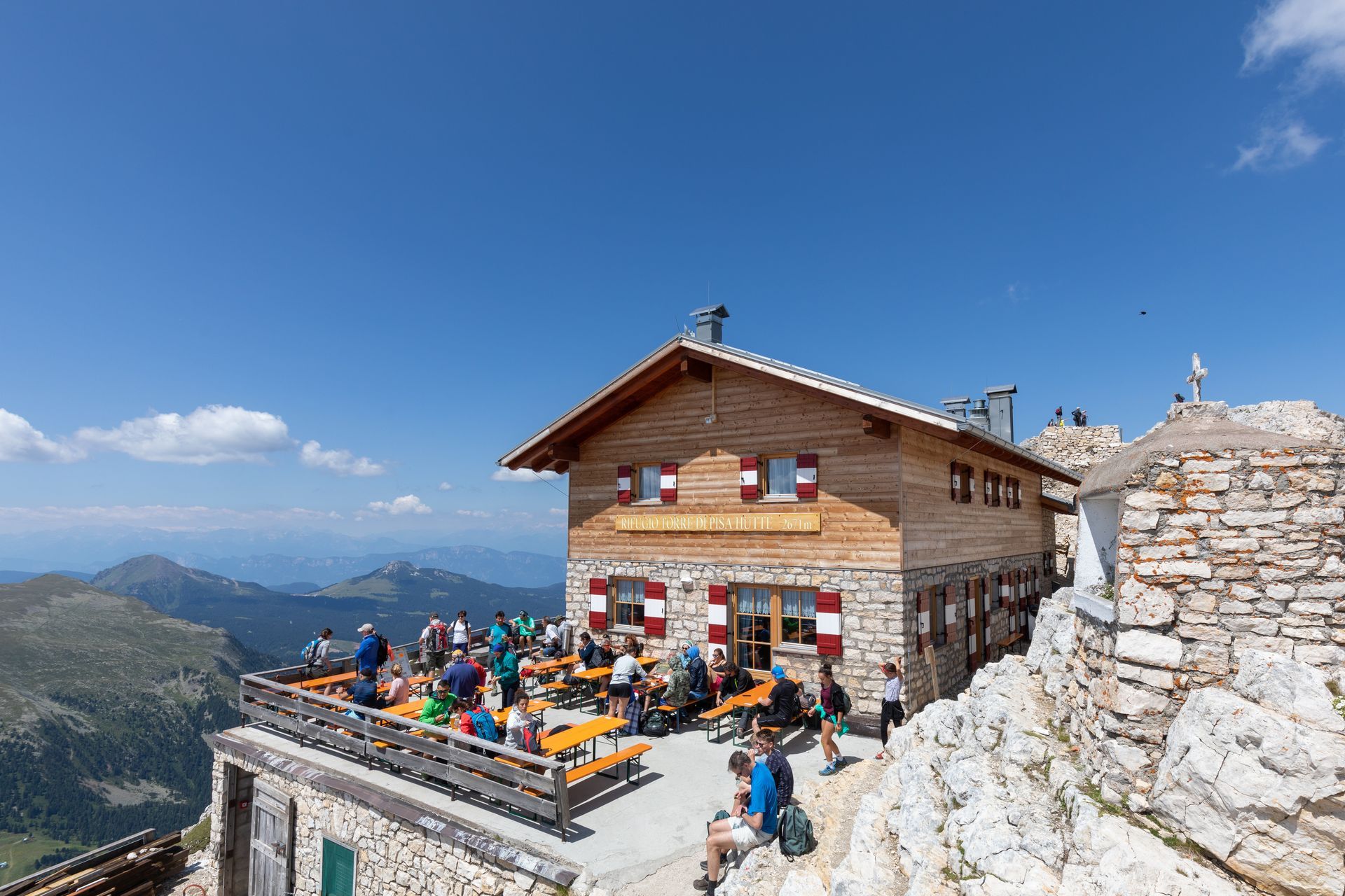Mittelschwere Berg- und Felswanderung in den Latemar, über die Gamsstallscharte auf den Gipfel und zur Pisahütte. Schöne Rundsicht.
